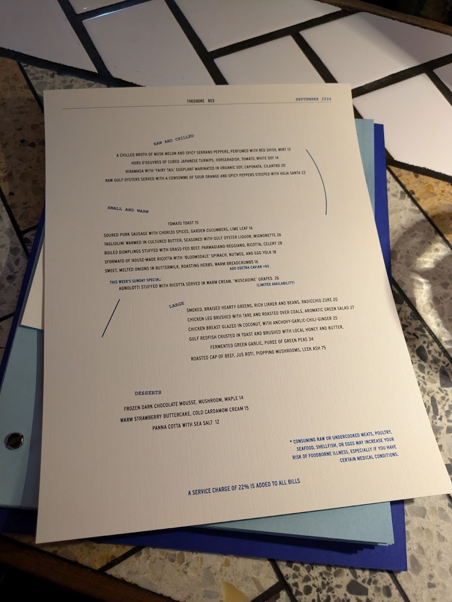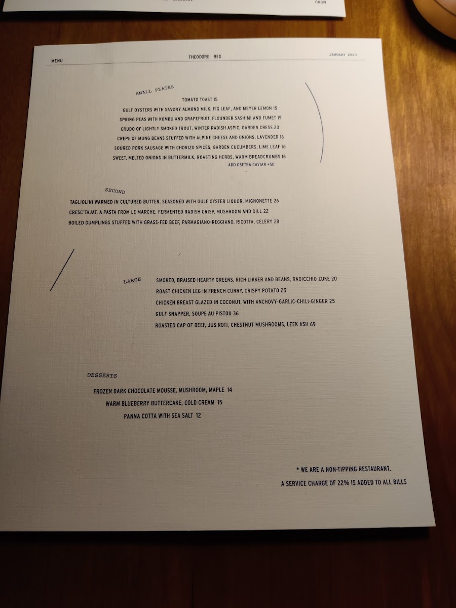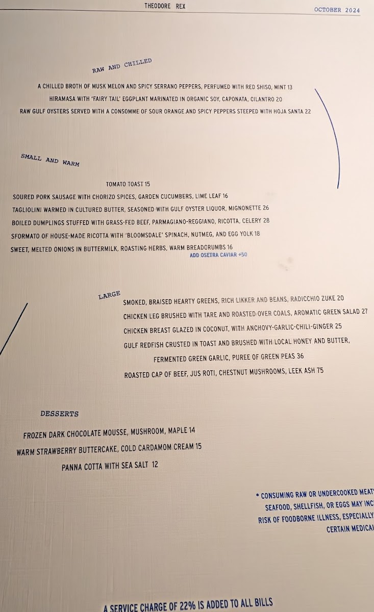Welcome to Theodore Rex, a culinary gem nestled in the heart of Houston at 1302 Nance St. This intimate eatery is not just a restaurant; it offers a complete dining experience that tantalizes the senses. The menu, while concise, is bursting with depth and excitement, featuring unique flavor combinations that evoke heartwarming nostalgia.